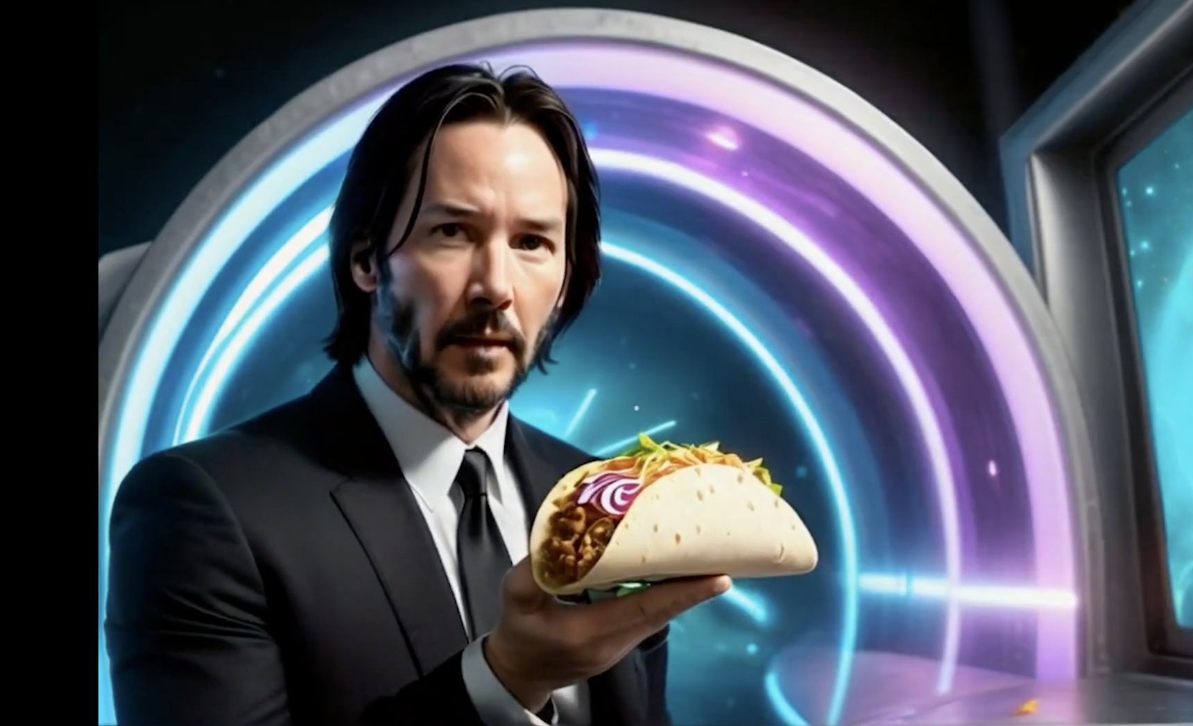 This AI-assisted concept video reimagines Taco Bell’s late-night campaign through a custom Keanu-inspired character and a more cinematic, narrative-driven approach. Using generative tools, ElevenLabs for voice, and Haiper for video, the piece was designed as the first chapter in an episodic concept where a time portal sends him into different settings and eras for late-night Taco Bell adventures.